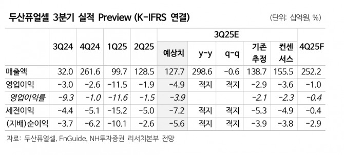 이미지 확대보기분기 매출액 1277억원, 영업적자 49억원을 기록하면서, 영업적자폭 확대를 예상했다. 정 연구원은 “SOFC 감가상각비 증가 영향으로 판단된다. 4분기에는 연료전지 매출 확대가 예정되나, 흑자전환까지는 시간이 필요하다”고 설명했다.