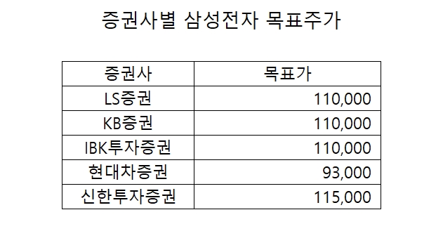 이미지 확대보기1일 금융투자업계에 따르면, 신한투자증권은 삼성전자의 목표 주가를 기존 9만 원에서 11만5000원으로 27.7% 올렸다. 이는 국내 증권사 중 가장 높은 수준으로, KB증권과 미래에셋증권이 제시한 11만1000원보다도 4000원 높은 수치다.