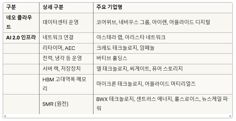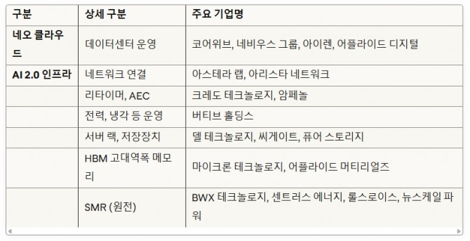 이미지 확대보기※ 본 기획 시리즈는 KB증권의 "[네오 클라우드] AI 2.0 인프라 시대 개막, 수혜주/ETF 제시" 리포트를 참고하고 인공지능(AI) 기술을 활용해 방대한 자료를 분석·정리했습니다. 투자 판단은 투자자 본인의 책임이며, 본 콘텐츠는 투자 권유가 아닙니다.