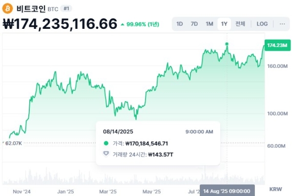 암호화폐 통계 분석 플랫폼 코인마켓캡에 따르면 비트코인은 10월 5일 기준 1억7400만 원 선에서 거래되고 있다. 올 8월 14일 이후 두번째로 1억7000만 원을 돌파했다.
