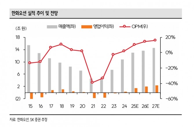한승한 SK증권 연구원은 “글로벌 LNGC 발주 확대 기조인 가운데 ‘NextDecade’의 ‘Rio Grande’ 4~5번 트레인을 포함한 다수의 북미 LNG 프로젝트향 LNGC 발주는 한화쉬핑을 통해 필리조선소의 하도급 형태 및 동사의 직접 수주로 이어지며 2029년부터의 LNGC 인도 슬롯 확보는 무리 없을 전망”이라고 내다봤다.