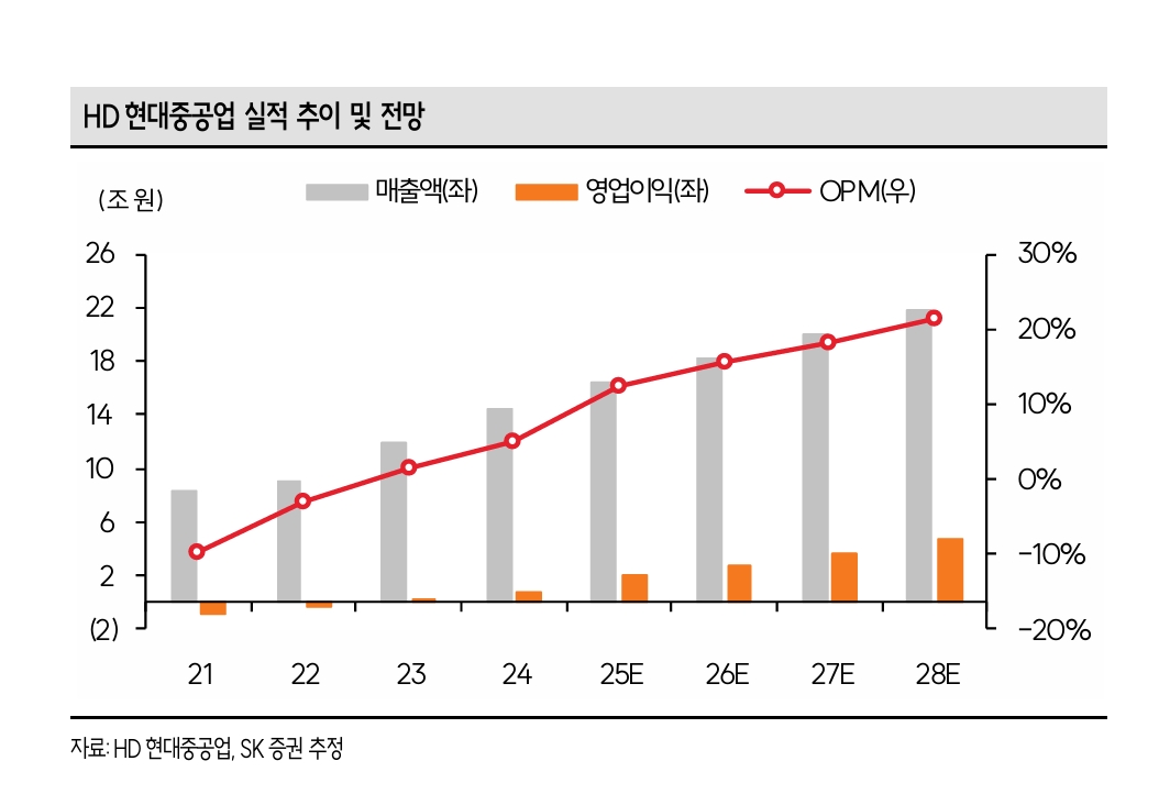 한승한 SK증권 연구원은 “미국 내 조선소 인수 계획이 현실화될 경우 추가 주가 상승여력이 충분히 남아 있다”며 “하계 휴가로 인한 조업일수 감소는 불가피했으나, 외국인 노동자들 중심의 공정 진행을 통해 매출 감소폭이 제한된 것으로 파악된다”고 분석했다.