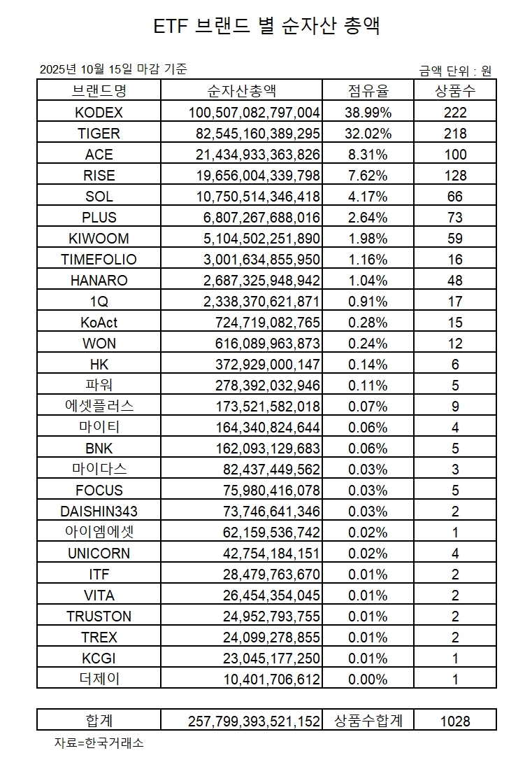 16일 한국거래소에 따르면, 지난 15일 기준 KODEX의 순자산총액은 100조 5071억원을 기록하며, 국내 ETF 시장에서 처음으로 '100조 클럽' 시대를 열었다. 이는 전체 ETF 시장 점유율의 38.99%에 달하는 수치이며, 2위인 미래에셋자산운용의 'TIGER' 브랜드에 비해 약 18조 원가량 많은 규모에 해당한다.