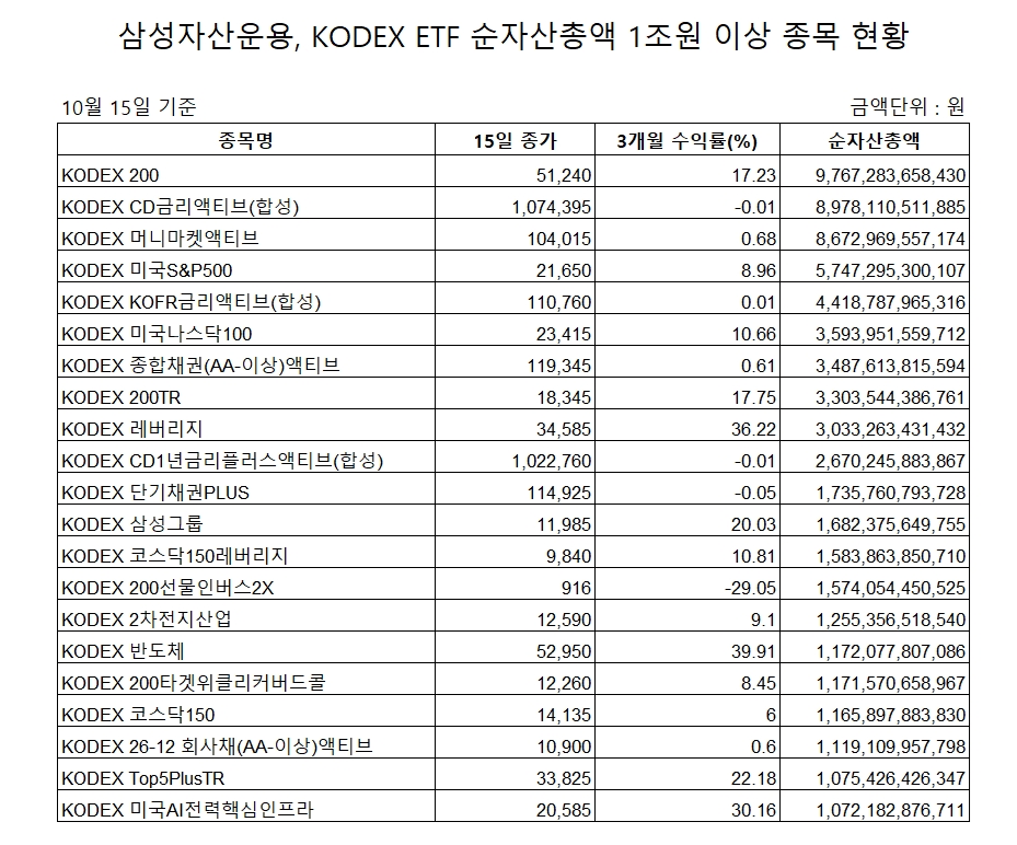 한편, 삼성자산운용은 2002년 국내 최초의 ETF를 상장한 운용사 중 하나이며, 이날 기준 국내에서 가장 많은 ETF 상품(222개)을 운용하고 있다.