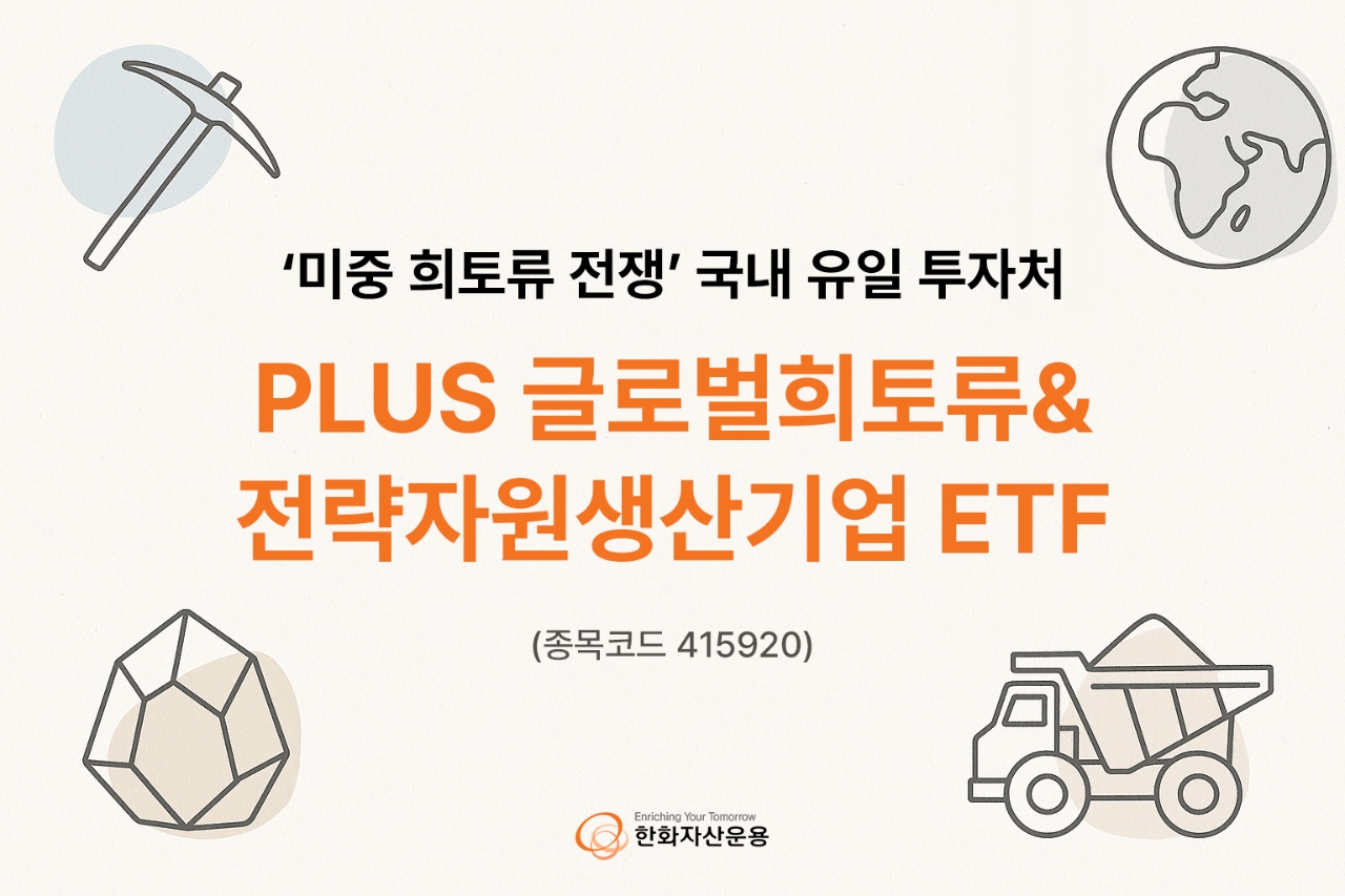 한화자산운용은 16일, 미·중 간 광물 패권 경쟁이 심화되는 가운데, 그 수혜를 받을 수 있는 국내 유일 ETF로 ‘PLUS 글로벌희토류&전략자원생산기업(415920)’을 제시했다.