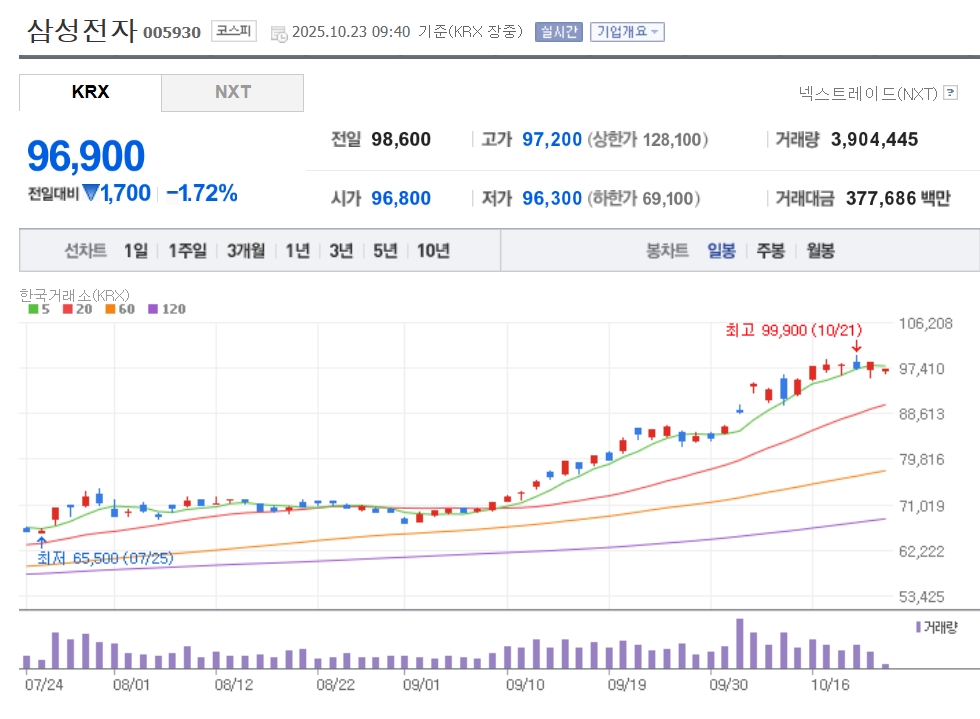 삼성전자 주가 추이. 자료=네이버페이 증권