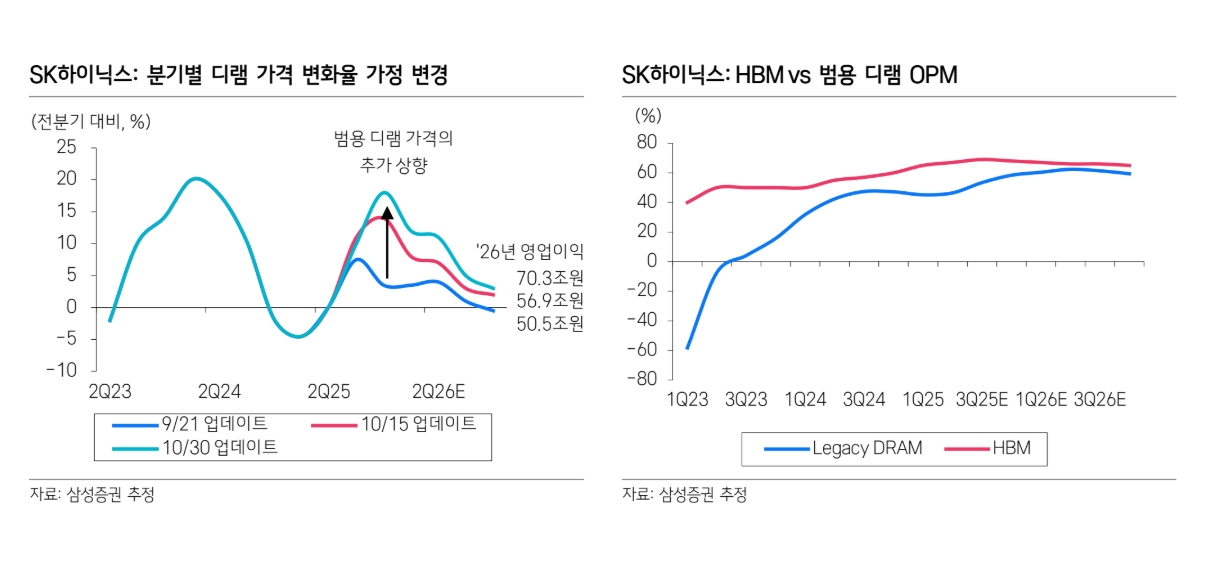아울러 “하이닉스의 2026년 연간 HBM 평균판매단가(ASP) 전망을 -3%에서 0%로 상향하고 HBM 영업이익도 7% 상향한 22조 5000억원으로 추정한다”고 짚었다.