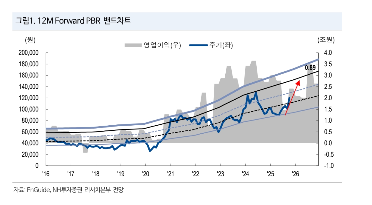 이미지 확대보기목표가 상향은 관세율 15% 인하에 따른 영업이익 전망치를 상향 조정했으며, 관세 협상 마무리로인한 불확실성 해소를 반영한 것이다.
