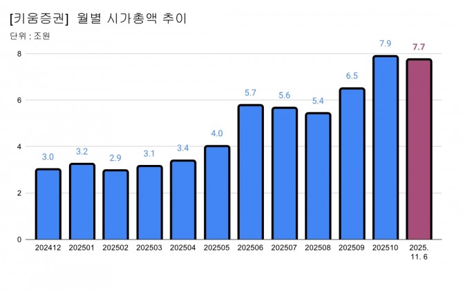 종가 기준 시가총액은 7조7023억원 으로 이날 하루동안 2250억원 증가했다.