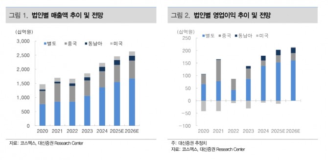 정 연구원은 "신규 브랜드 유입과 공동 영업 효과로 상해법인은 매출액 910억원(전년비 +26%)을 기록했고, 광저우법인은 잇센 합작법인(JV) 매출 호조에 힘입어 455억원(+15%)을 나타냈다"며 "다만 순수 광저우 법인은 오프라인·수출 중심의 신규 고객 유입에도 기존 대형 고객사의 부진이 이어지며 역성장을 보인 것으로 추정됐다"고 설명했다.