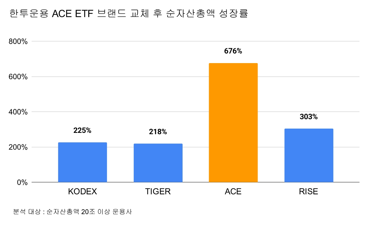 상품 성과도 뚜렷하다. 대표 상품인 'ACE 글로벌반도체TOP4 Plus'는 리브랜딩 이후 334.14%의 수익률을 기록했다. △ACE 엔비디아채권혼합 152% △ACE AI반도체포커스 117% △ACE 미국빅테크TOP7 Plus 122% △ACE 미국주식베스트셀러 94% △ACE 테슬라밸류체인액티브 98% 등 최근 3년간 출시된 주요 테크·성장 전략 상품 역시 높은 성과를 냈다. 국내 최초 금현물 ETF인 ACE KRX금현물도 145%의 수익률을 기록하며 브랜드 내 대표 상품으로 자리 잡았다.