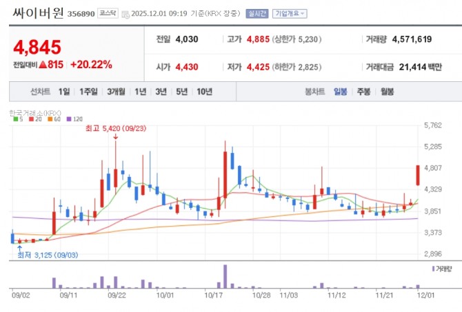 싸이버원 주가 추이. 자료=네이버페이 증권