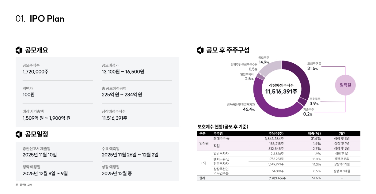 나라스페이스는 이번 상장을 통해 총 172만 주를 공모할 계획이다. 희망 공모가는 주당 1만3100원~1만6500원이며, 공모 예정 금액은 약 225억~284억 원 수준이다. 기관 대상 수요예측은 11월 26일부터 12월 2일까지 진행되며, 청약은 12월 8~9일 이틀간 진행된다. 상장 주관사는 삼성증권이 맡았다.
