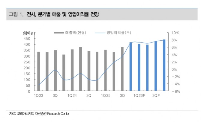 코리아써키트의 내년 별도 기준 영업이익은 908억원으로 올해 대비 91.6% 증가를 예상했다. 연결기준 영업이익은 1248억원으로 164% 증가를 전망했다. 2023~2024년 영업적자 기록했으나 올해 474억원으로 흑자전환한 뒤 2026년 본격적인 수익성 확대로 전환될 것이라고 예측했다.