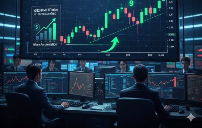 XRP는 기관 투자자들의 강력한 지원으로 2달러 지지선 근처에서 안정적인 흐름을 보였다. 블록체인 분석 플랫폼 웨일인사이더(WhaleInsider)의 보고에 따르면, 지난 5일 XRP 현물 ETF에 1,284만 달러의 자금이 유입됐으며, 이는 13일 연속 플러스 자금 유입 기록이었다. 현재 총 ETF 운용자산(AUM)은 약 8억 8,100만 달러로, 비트코인 및 이더리움 ETF의 초기 도입률을 상회하는 수치를 보였다. 이러한 기관 자금 유입은 주요 가격대를 더욱 안정시키는 핵심 요인으로 작용했다.