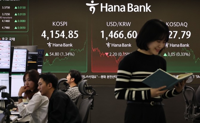 이미지 확대보기8일 한국거래소에 따르면, 코스피는 전 거래일 보다 1.34%(54.80포인트) 상승한 4154.85로 마감했다.