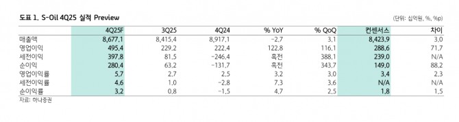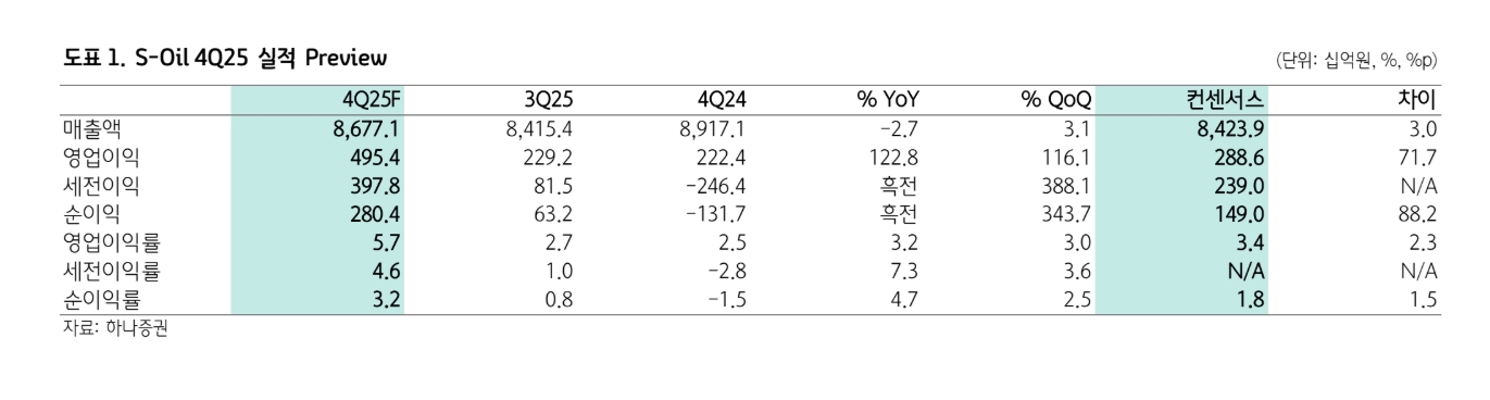 이미지 확대보기윤재성 하나증권 연구원은 “2026년 영업이익을 기존 1조8000억원에서 2조원으로 11% 상향한다”며 “정제마진 개선 및 OSP 하향(중동 산유국들이 장기계약 물량에 적용하는 공식판매가격을 낮춘 효과), 주요 품목인 PX(파라자일렌) 마진 개선을 반영해 빠르게 상향될 것”이라고 전망했다.
