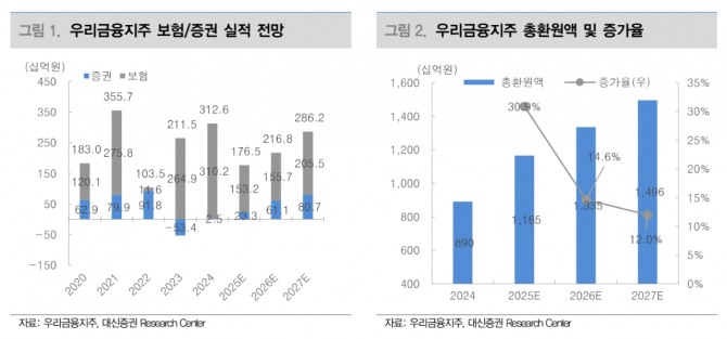 박 연구원은 “2026년 동양생명과 ABL생명의 순이익을 1557억원, 우리투자증권은 611억원으로 추정한다”며 “양사 합산 2000억원 수준의 추가 이익 기여가 가능할 것”이라고 내다봤다.