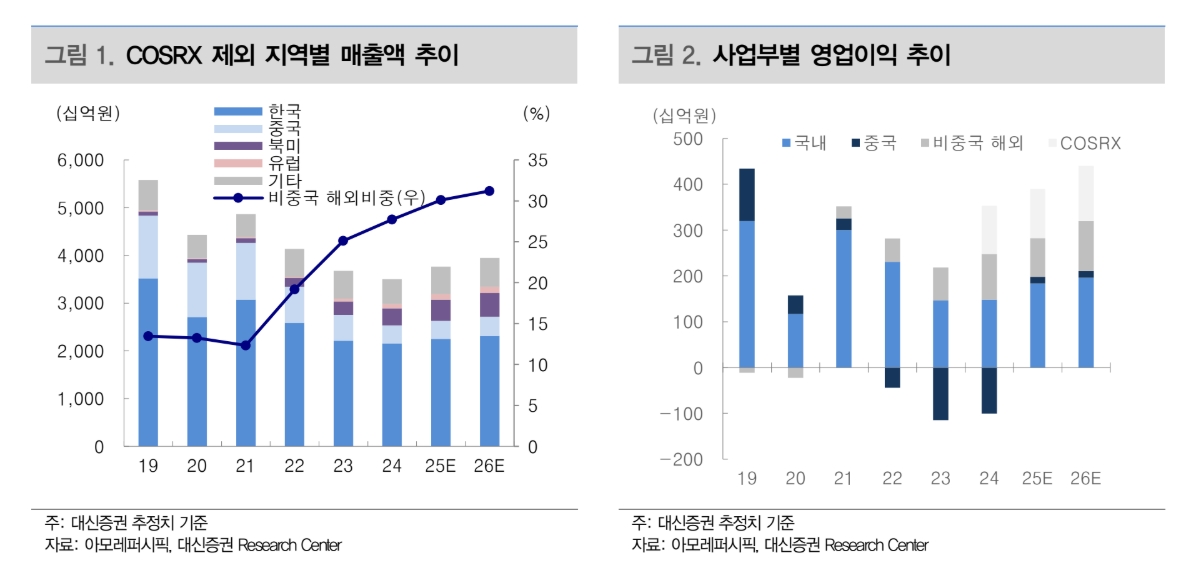 해외 사업 매출액은 5258억원으로 전년 대비 1% 감소하고 영업이익은 582억원으로 전년 대비 36% 증가해 영업이익률 11.1%를 기록할 전망이다. 중화권 및 COSRX 부진으로 해외 매출 성장은 제한적이나 본업 해외 성장 스토리는 여전히 유효하다.