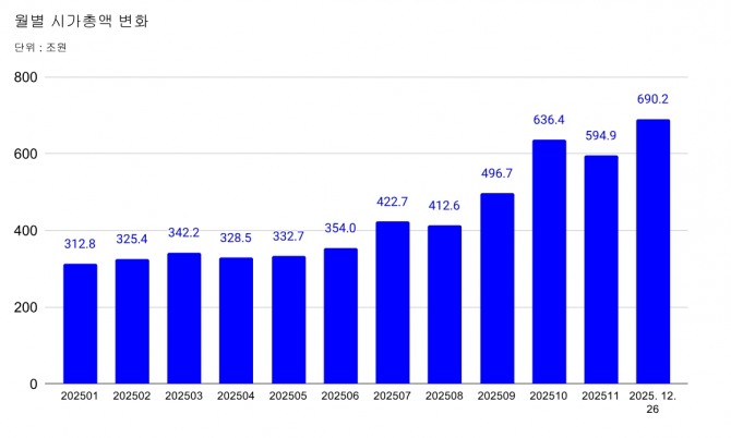 현재가 기준 시가총액은 690조2298억 원이다. 이날 하루 동안 32조5580억 원 증가했다.