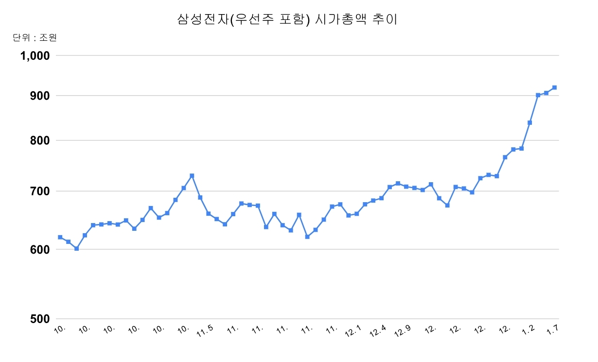 ■ 삼성전자, 단일기업 최초 시총 1000조 시대 임박