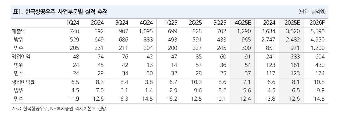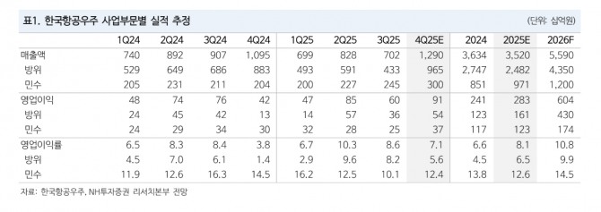 이 연구원은 "FA-50 한국 공군 상환기와 미르온 납품 일정이 지연될 것으로 예상되며, 개발비 상각과 이라크 CLS 사업 등 일회성 요인이 수익성에 부담으로 작용할 수 있다"며 “단기 실적 변동성에도 불구하고 KF-21과 FA-50을 중심으로 한 수출 모멘텀은 중장기 성장 스토리를 뒷받침할 것”이라고 평가했다.