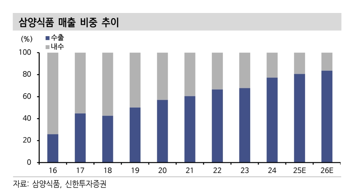 또 “최근 주가 조정으로 밸류에이션(2026년 주가수익비율 15.6배) 부담이 다소 완화됐다”며 “밀양 2공장(생산능력 +39%) 가동 이후 가동률이 빠르게 상승하는 가운데, 2027년 1월말 중국 공장(생산능력 +43%) 완공 후 외형 성장 가속화가 기대된다”고 덧붙였다. 양적 한계가 명확해진 국내 음식료 시장에서 모범 사례라는 것이다.