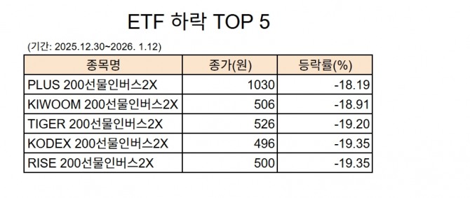 그러나 이 같은 증권가의 강한 낙관론을 믿지 않은 개인투자자들의 손실은 눈덩이처럼 불어나고 있다. 지난 12일 기준 'KODEX 200선물인버스2X'의 종가는 496원을 기록했다. 1년 전과 비교하면 반토막을 넘어섰고, 한때 '국민 ETF'로 불렸던 이 상품은 이제 '동전주' 신세가 됐다.