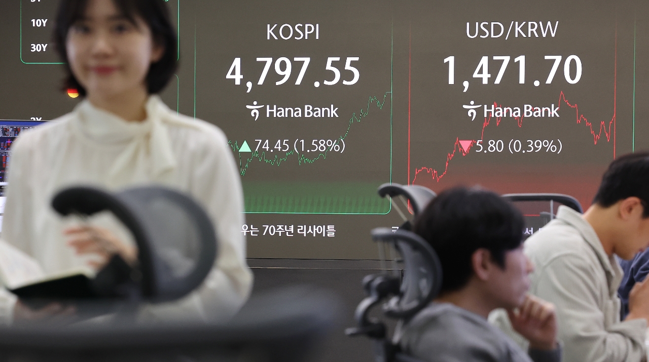 15일 한국거래소에 따르면, 코스피는 전 거래일 보다 1.58%(74.45포인트) 상승한 4797.55로 마감했다.