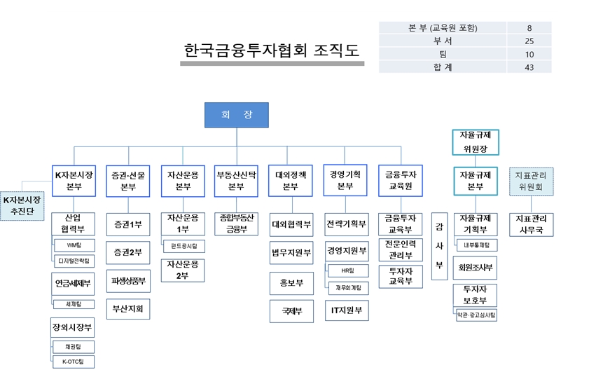 지역 회원사 지원 체계도 손봤다. 부·울·경 지역 금융투자회사 지원 강화를 위해 부산지회를 증권·선물본부로 이관했다. 동시에 조직 내 중복 기능을 줄이기 위해 일부 팀은 폐지하고 부서 단위 통합 운영으로 업무 효율성을 높였다.