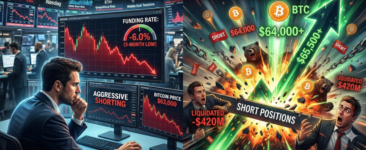 현재 비트코인은 이란 공습 직후 떨어진 6만 3,000달러 선에서 지지 기반을 다진 뒤 6만 7,000달러 회복을 시도하고 있다. 만약 6만 7,000달러를 성공적으로 탈환할 경우, 하락에 베팅했던 막대한 규모의 숏 포지션들이 동시 다발적으로 청산되며 예상치 못한 급등 랠리가 나올 수 있다는 관측이 지배적이다.