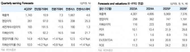 이미지 확대보기손현정 유안타증권 연구원은 “AI 데이터센터 전력 인프라의 상단(765kV 송전망 확장)과 하단(STATCOM 등 전력품질 관리) 수요에 동시 대응 가능한 포트폴리오를 갖추고 있는 가운데 하이엔드 시장에서의 확고한 레퍼런스를 고려할 때, 현재 20배(27F PER 기준)의 밸류에이션은 Peer(피어) 대비 저평가 국면”이라며 “주가 상승에 따른 밸류에이션 부담보다 고단가 수주분의 매출 전환 및 증설 본격화에 따른 이익 성장 가시성에 주목해야 할 시점”이라고 분석했다.