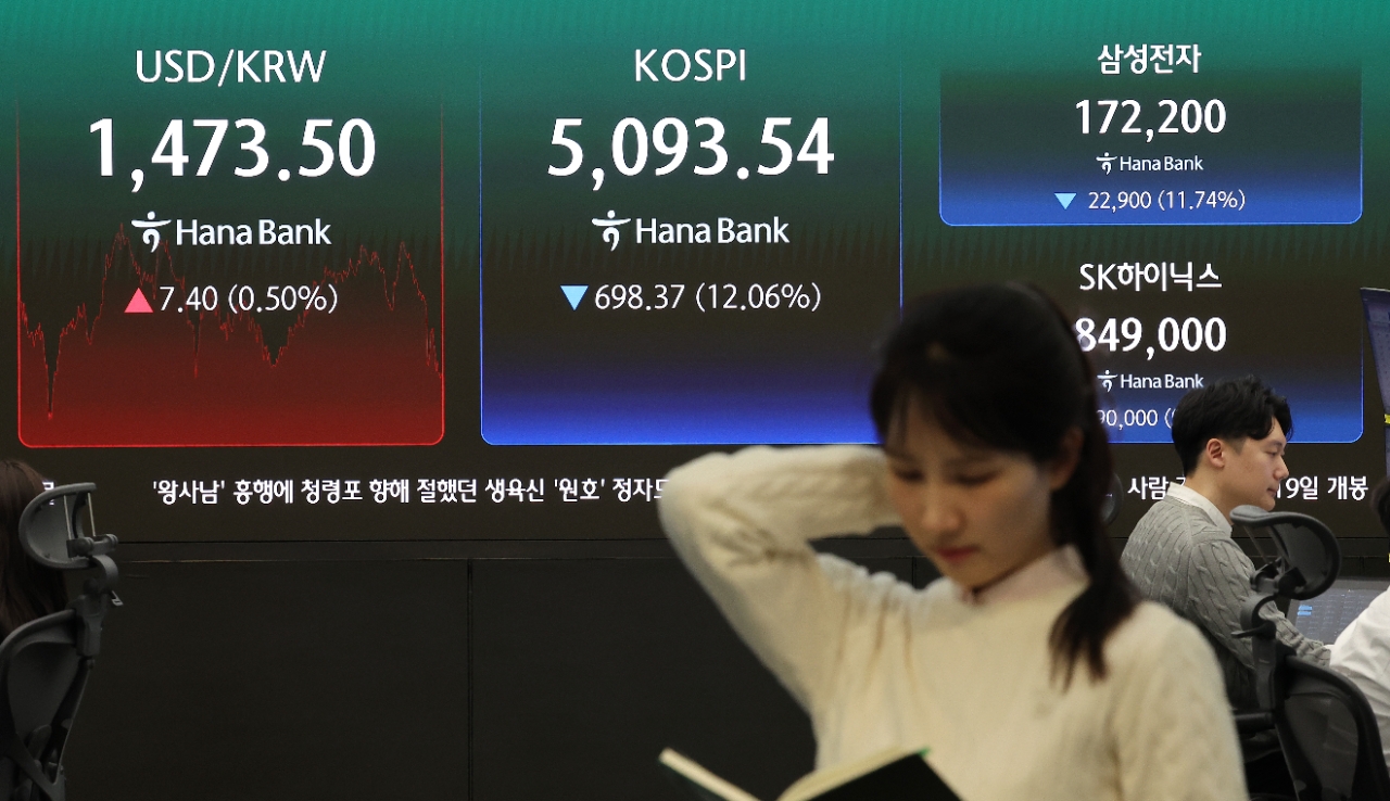삼성전자(-11.74%), SK하이닉스(-9.58%), 현대차(-15.8%), 삼성전자우(-11.15%), LG에너지솔루션(-11.58%), 삼성바이오로직스(-9.82%), 한화에어로스페이스(-7.61%), SK스퀘어(-12.74%), 기아(-14.04%), HD현대중공업(-13.39%)