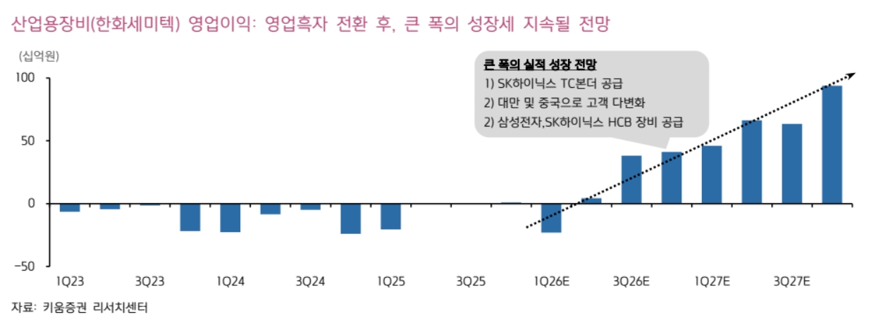 또한 "특히 한화세미텍이 1분기 SK하이닉스향 TC본더 수주를 본격화하면서 2분기부터 관련 매출이 크게 늘어날 것"이라며 “대만과 중국 고객들로 반도체 장비를 신규 공급하며 고객 다변화에 성공할 것으로 예상한다”고 부연했다.