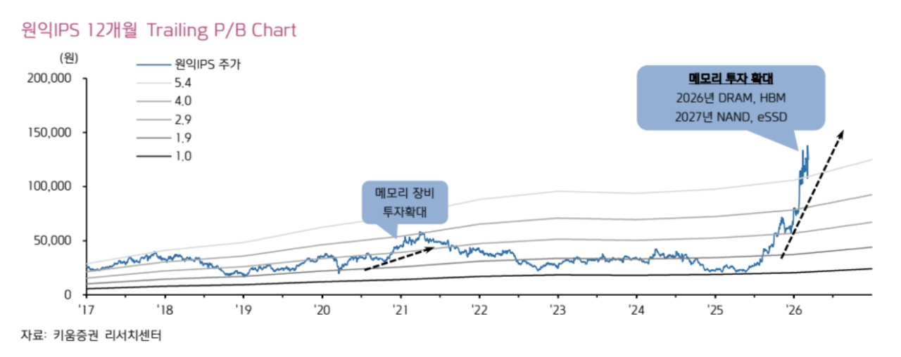 특히 삼성전자 평택4공장과 SK하이닉스 M15X 공장을 중심으로 한 디램(DRAM) 투자 확대에 주목했다. 박 연구원은 “삼성전자는 평택4공장(Phase2) DRAM 투자를 확대하고 SK하이닉스는 M15X DRAM 투자를 확대할 것으로 보인다”며 “원익IPS는 2026년 DRAM에서 2027년 낸드(NAND)로 이어지는 고객사 투자 사이클‘의 수혜를 받을 것”이라고 내다봤다.