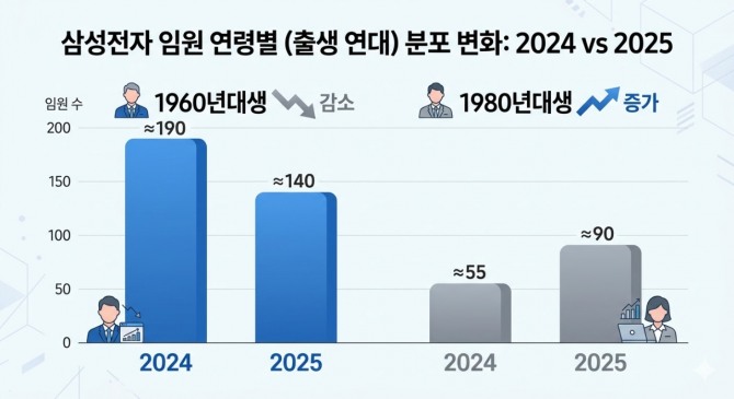 11일 글로벌이코노믹이 삼성전자의 최근 2개년(2024년·2025년 기준) 사업보고서를 전수 분석한 결과, 삼성전자의 인사는 '60년대생의 대거 퇴진'과 '80년대생 기술 인재의 전면 배치'로 요약된다. 이는 이재용 회장이 강조해 온 '성과주의'와 '인재 중심' 경영이 현장에 빠르게 안착하고 있음을 보여준다.