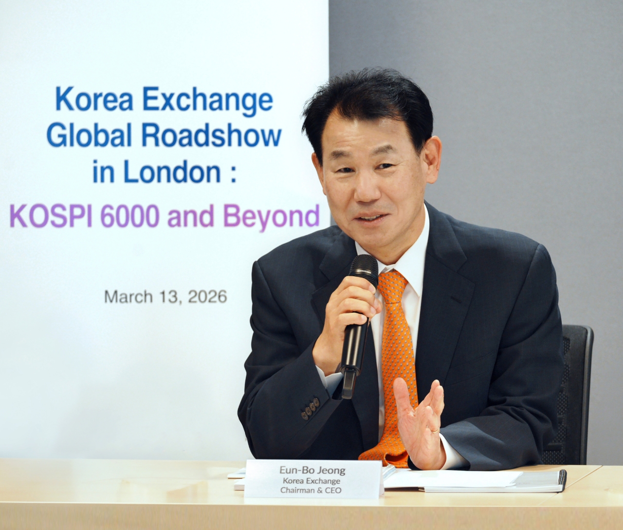 이미지 확대보기한국거래소는 13일 오전 10시(현지시간) 영국 런던에 위치한 CLSA 런던 지점에서 글로벌 기관투자자 약 30명을 대상으로 'Korea Exchange Global Roadshow in London : KOSPI 6000 and Beyond' 행사를 개최했다고 밝혔다.