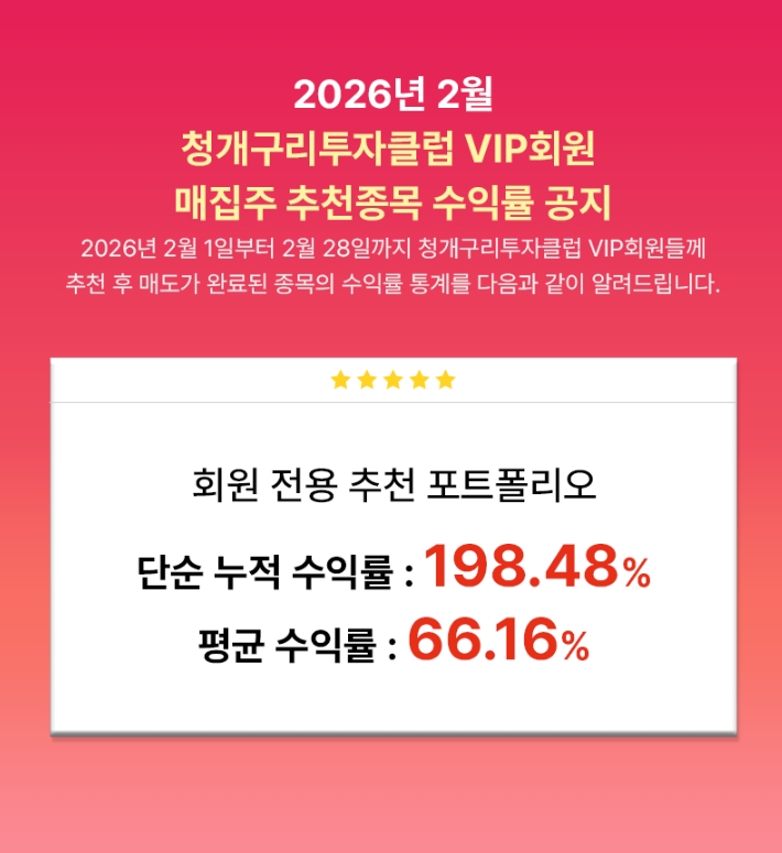 이미지 확대보기19년째 운영 중인 투자정보회사 청개구리투자클럽은 매월 매집 전략 종목과 단기 스윙 전략 종목의 실제 수익률과 성과 결과를 정기적으로 공개하는 투명한 성과 공시 정책을 이어가고 있다. 이번에 공개된 2월 투자 참고 종목의 상세 성과 데이터 역시 공식 홈페이지 공지사항에서 확인할 수 있다.