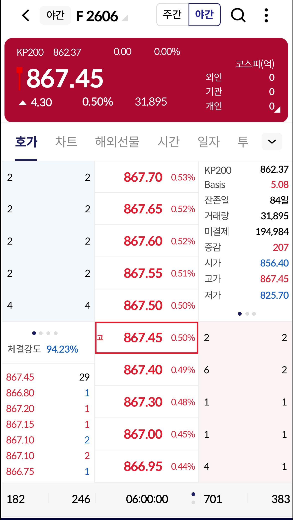 코스피200 야간선물, 뉴욕증시 하락 딛고 소폭 상승…867.45 마감