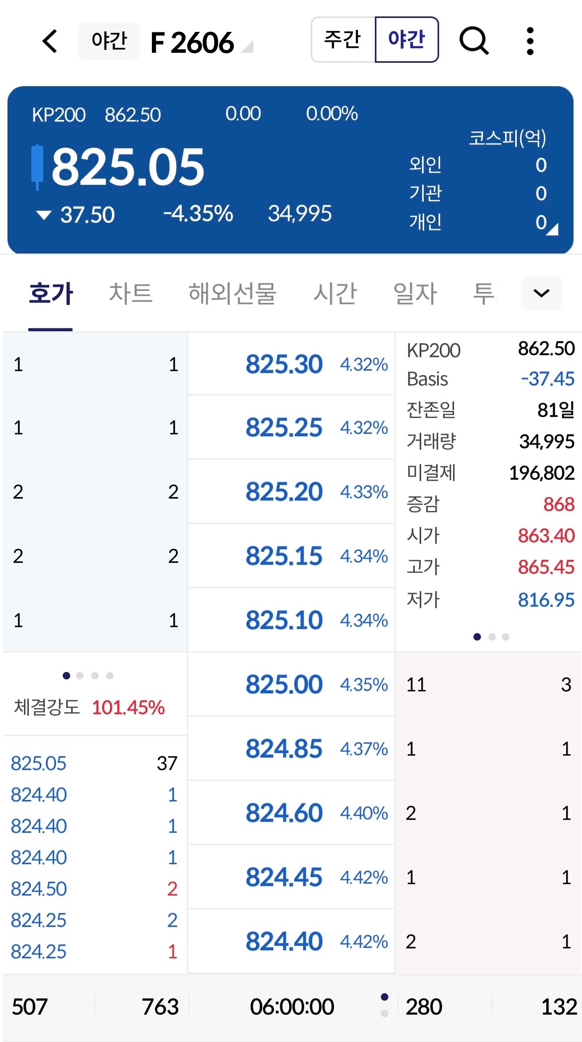 앞서 지난 21일 마감기준 야간 선물은 20일 주간 시장 마감 대비 4.35% 급락한 825.05로 마감했다.