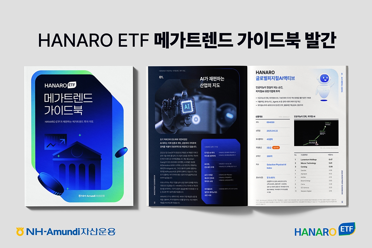 이미지 확대보기가이드북은 △인공지능(AI) △코리아 리레이팅 △K-트렌드 △지정학적 격변 등 4대 메가트렌드를 중심으로 구성됐다. 각 테마별 시장 분석과 함께 관련 HANARO ETF 상품 및 구성 종목을 제시해 투자 판단에 필요한 정보를 담았다.