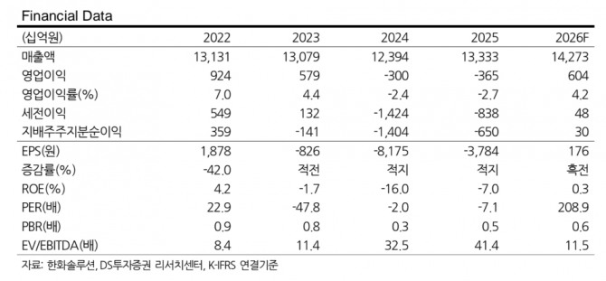 또한 "그나마 긍정적 요인은 1분기 실적으로 미국 내 모듈 판매량 증가에 힘입어 태양광 부문 흑자전환이 예상된다"며 " 2026년 연간 영업이익을 6040억원(영업이익률 4.2%)으로 전망하며 흑자 전환을 예상하고 있다"고 부연했다.