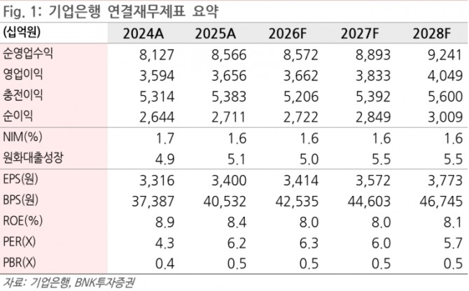 연간 실적은 전년과 유사한 수준을 예상했다. 김 연구원은 "비이자이익 감소와 세금 부담 확대에도 불구하고 이자이익 증가와 대손비용 안정화로 2026년 순이익은 약 2조7000억원 수준을 유지할 것"이라며 "다만 주주환원 정책은 아쉬운 부분"이라고 판단했다.