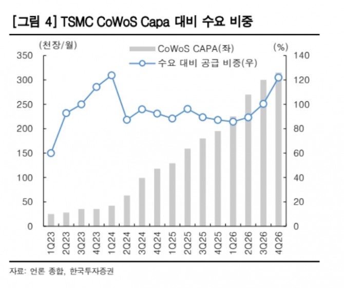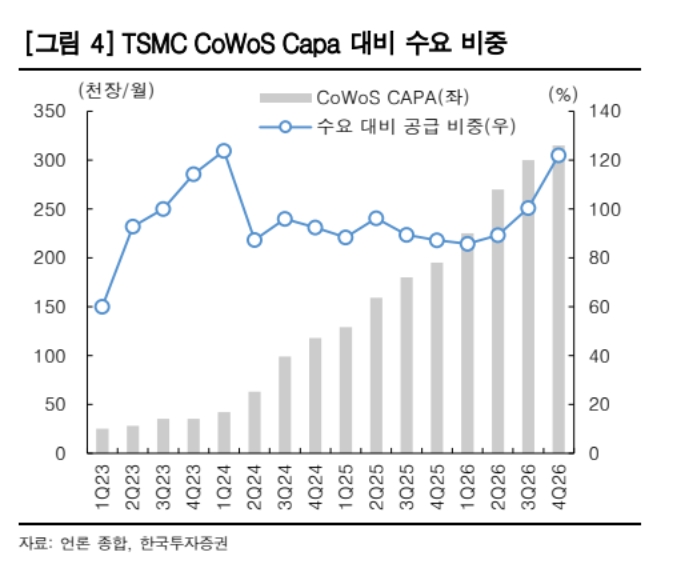 이미지 확대보기글로벌 파운드리 업체인 TSMC는 첨단 패키징(CoWoS) 생산능력을 2026년 말까지 전년 대비 약 60% 확대할 계획이다. 대만 외주반도체조립·테스트(OSAT) 기업들은 일부 테스트 및 패키징 가격을 최대 30% 인상했다.