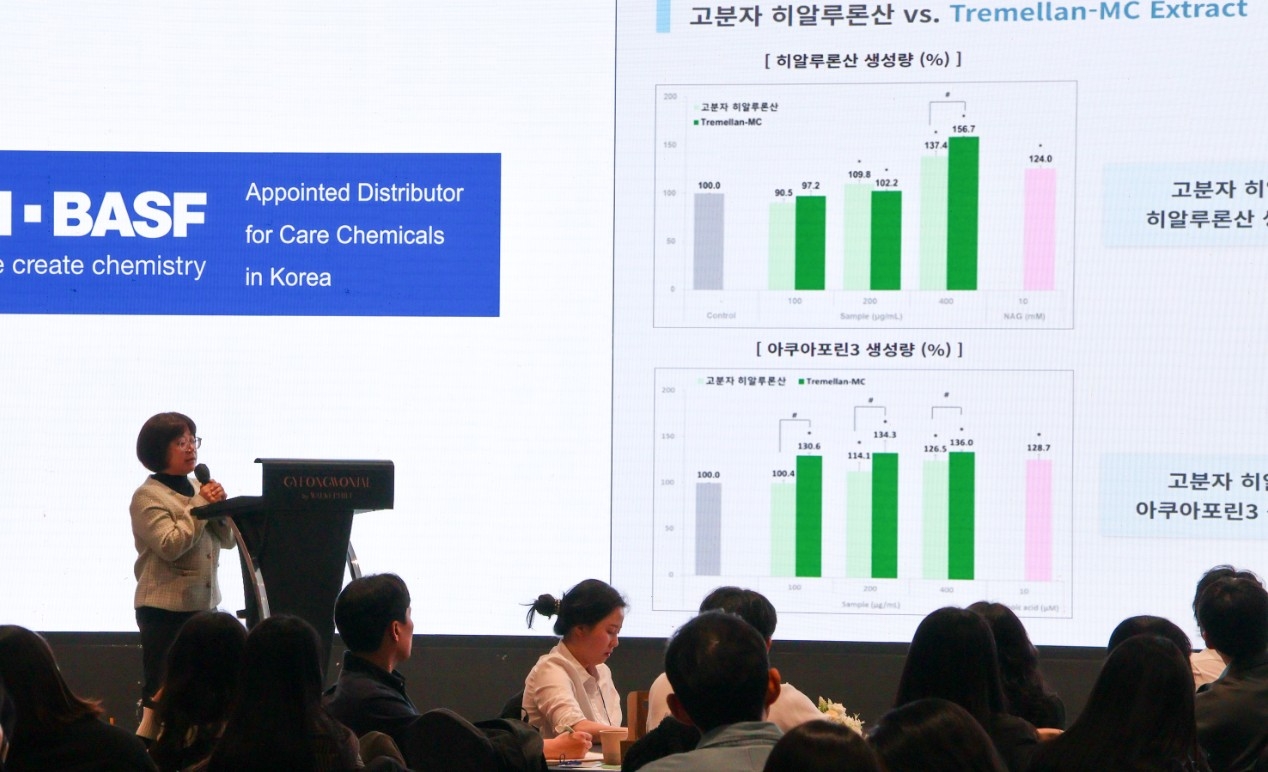 심포지엄에서는 글로벌 스킨케어·헤어케어 트렌드와 함께 피부 장벽 강화 소재 ‘Mimiskin’, 생분해성 오파시파이어, 실리콘 대체 소재 등이 소개됐다. 아울러 Smart DDS(약물전달시스템)와 식물 유래 엑소좀 기반 전달 기술 등 고효능 소재 관련 내용도 발표됐다.