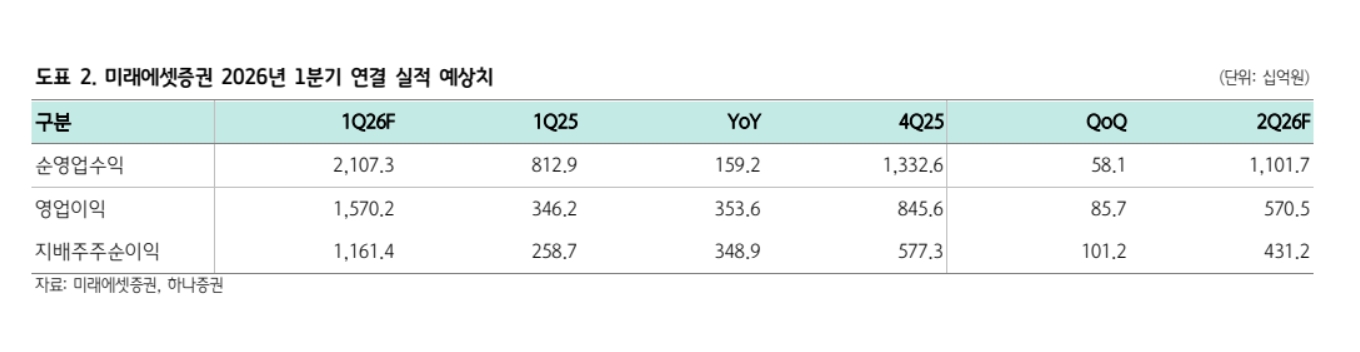 트레이딩 부문도 개선 흐름으로 봤다. 고 연구원은 "채권 평가손실 축소와 ETF LP 운용 수익 확대에 더해 SpaceX 평가이익이 반영되며 운용 및 기타 손익이 큰 폭으로 증가할 것"이라며 "중장기 성장성도 주목, SpaceX뿐 아니라 xAI, 글로벌 딥테크·AI 투자 확대가 이어지면서 투자조합 자산 규모가 빠르게 증가하고 있다"고 봤다.