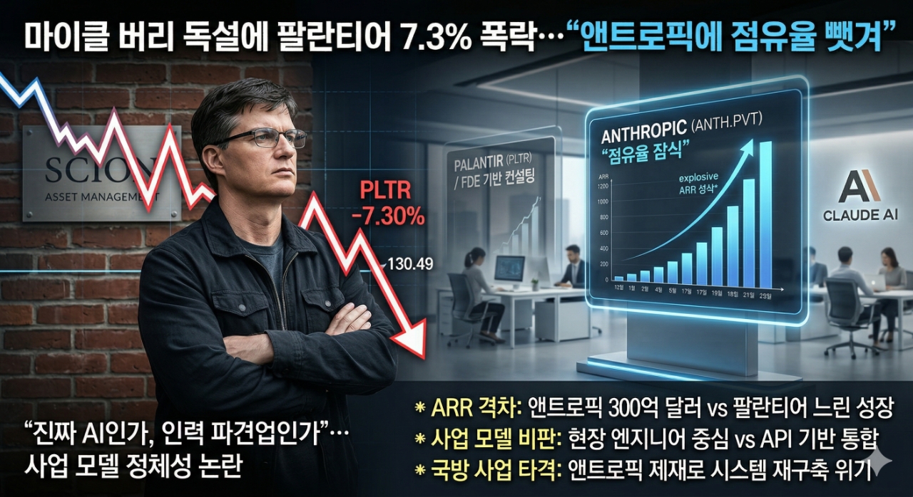 앤트로픽의 기업 가치가 3,800억 달러에 육박하는 가운데, 시장의 무게추가 운영 체제(팔란티어)에서 핵심 엔진(앤트로픽)으로 이동하고 있다는 버리의 베팅이 현실화될지 주목된다.