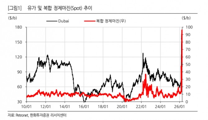 이용욱 한화투자증권 연구원은 “전쟁 이전부터도 2026~2028년 글로벌 정유 시장은 수요가 공급을 상회하는 타이트한 수급 사이클 진입이 예고돼 있었다”며 “전쟁 종결 후에도 재건 수요에 따른 디젤 강세와 설비 정상화 시차를 고려하면 고마진 기조는 지속될 전망"이라고 내다봤다.