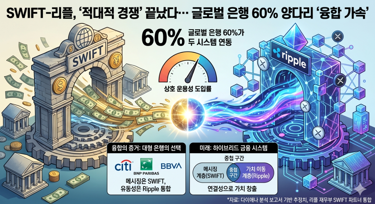 전문가들은 향후 글로벌 금융 시스템이 SWIFT가 핵심 메시징 계층을 담당하고, 리플이 결제 속도와 유동성을 강화하는 ‘하이브리드’ 형태가 될 것으로 전망하고 있다.