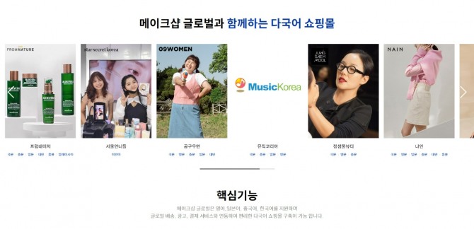 이미지 확대보기뿐만 아니라 여성의류 전용 쇼핑몰인 '나인(NINE)'은 한국어·영어·중국어(간체/번체)·일어 등을 지원하며 일본과 홍콩, 대만 등에도 쇼핑몰을 운영 중이다. 또 화장품 브랜드인 프럼네이처도 영어·중국어(간체/번체)·일본어에 이어 대만·홍콩·말레이시아 쇼핑몰을 운영하고 있다.